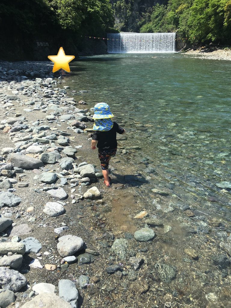 キャンプサイトはいずれも川から近く、息子のテンションがマックスに。