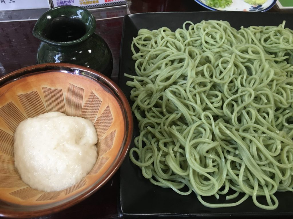 すっぱい梅干しを売っていた、すぐ近くのお店に入り、ワサビ好きの大人はワサビ入りのそばを注文。