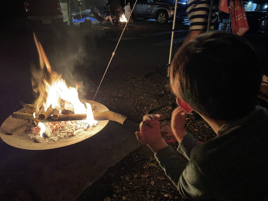 痛みが引いた子どもは元気に焚火を手伝ってくれました