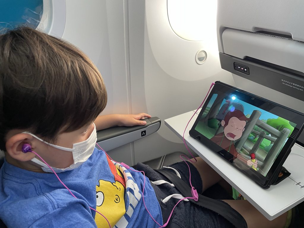子どもはNetflixからダウンロードしてきたジョージを観ていて快適そうです。
