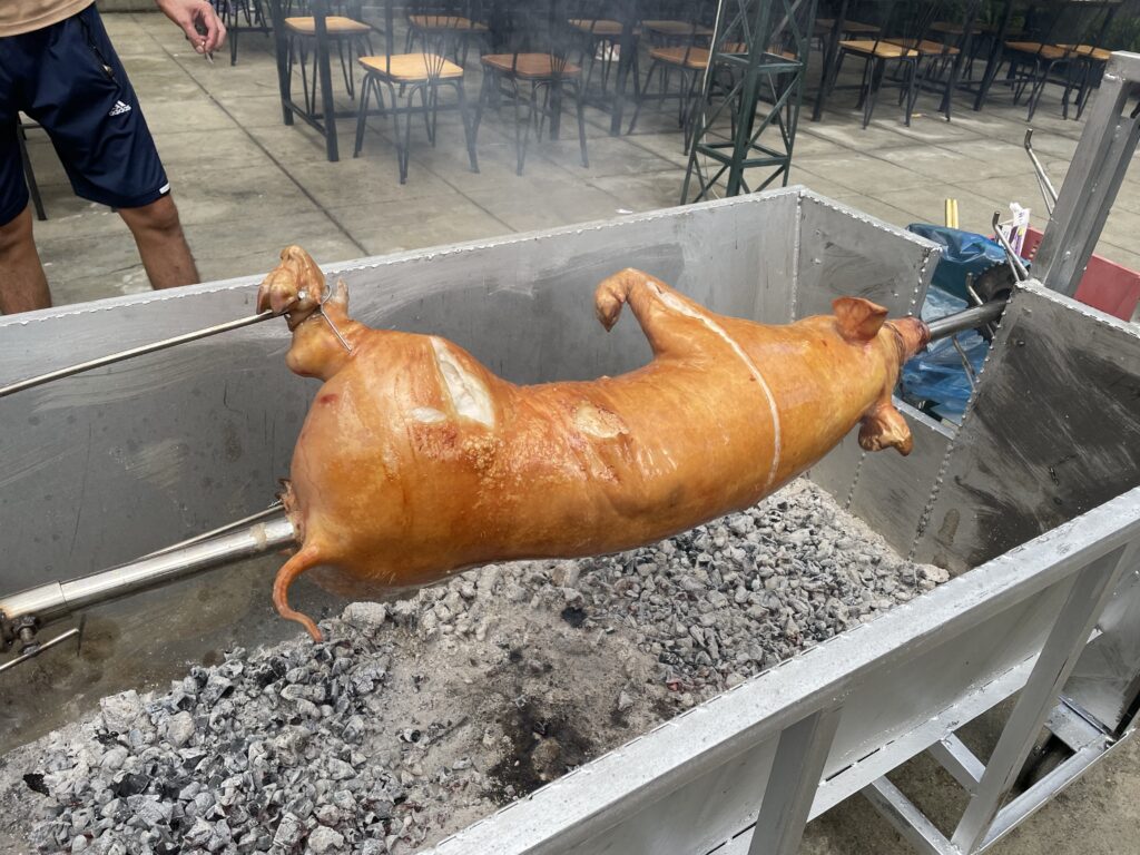 ビーチ沿いのホテルでも、少し裏路地を入れば、豚の丸焼きもが見れます